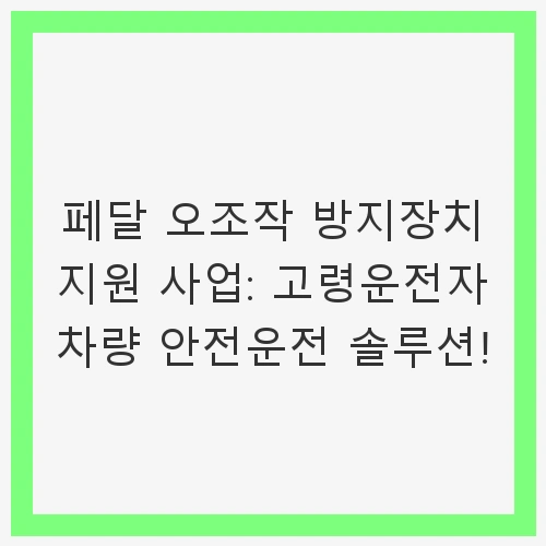 👉페달 오조작 방지장치 지원 사업: 고령운전자 차량 안전운전 솔루션! 확인하기
