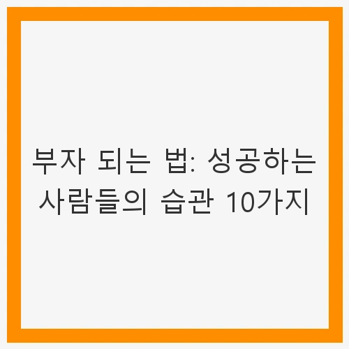 부자가 되는 과정은 긴 여정입니다. 이 여정에서 필요한 것은 올바른 습관과 태도입니다. 이번 글에서는 성공하는 사람들의 공통된 습관 10가지를 살펴보며, 이를 통해 부자 되는 법을 배워보도록 하겠습니다. 각 습관은 단순히 돈을 벌기 위한 방법이 아니라, 삶의 모든 영역에서 성공을 이루기 위한 기반이 될 것입니다.